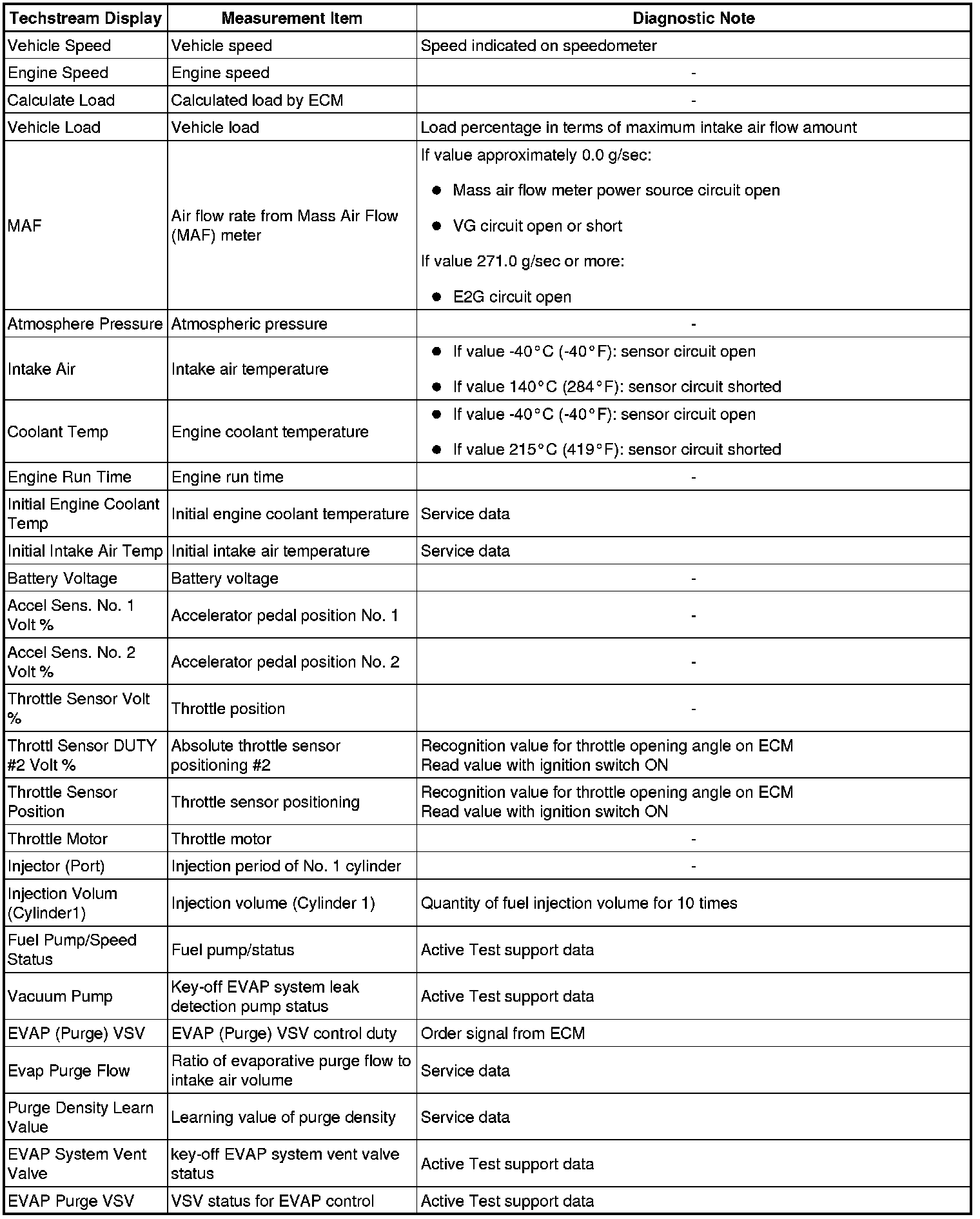 * The ECM records vehicle and driving condition information as freeze frame data the moment a DTC is stored. When troubleshooting, freeze frame data can be helpful in determining whether the vehicle was moving or stationary, whether the engine was warmed up or not, whether the air-fuel ratio was lean or rich, as well as other data recorded at the time of a malfunction.