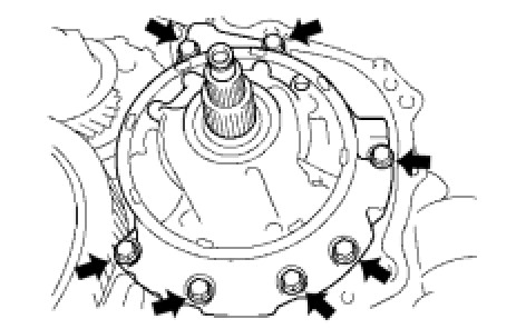 (c) Install the transaxle housing to the transaxle case with the 18 bolts.