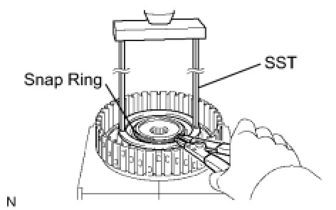 (c) Using a screwdriver, install the snap ring.