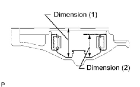 (e) As shown in the illustration, measure the 2 places of the transaxle housing, and calculate dimension F using the following formula.