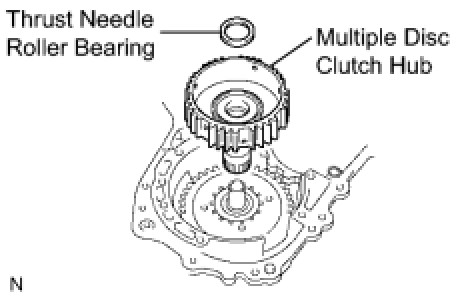 (b) Coat the thrust needle roller bearing and race with ATF, and install them onto the multiple disc clutch hub.