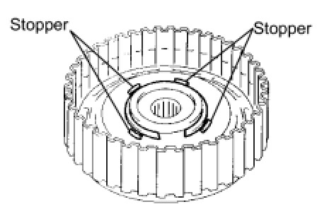 The end gap of the snap ring should not be aligned with any of the stoppers.