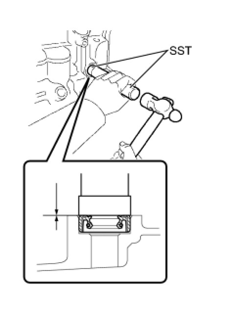 (b) Using SST and hammer, install the oil seal to the transaxle case.