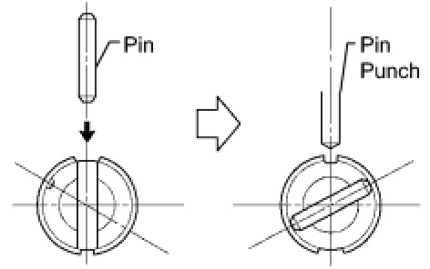 (b) Using a pin punch and hammer, drive in a new pin.