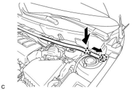 (a) Slide the hood to cowl top seal and disengage the clip as shown in the illustration.