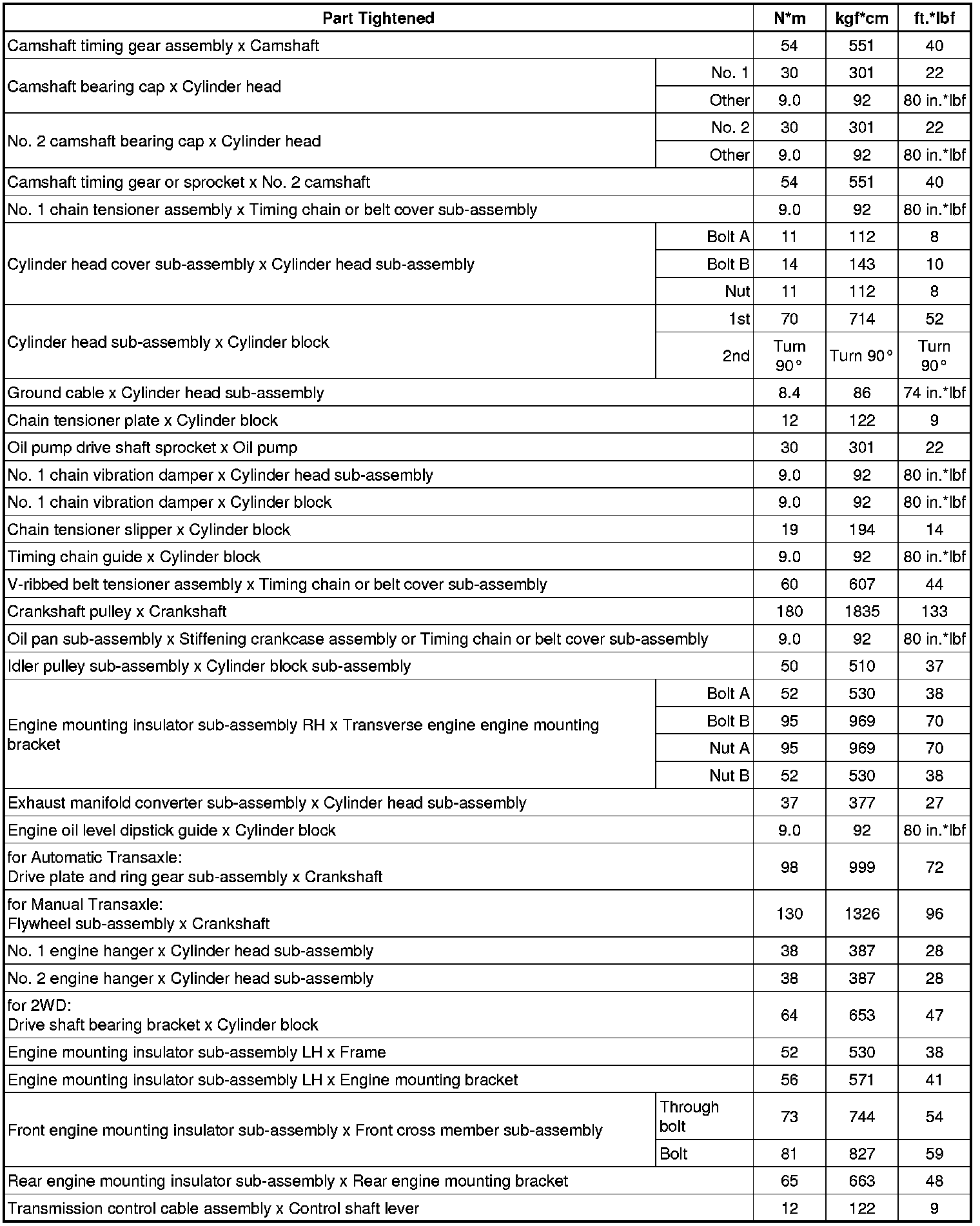 SPECIFICATIONS: 2AZ-FE ENGINE MECHANICAL: TORQUE SPECIFICATIONS