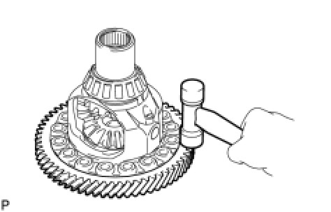 (c) Using a plastic-faced hammer, tap on the ring gear to remove it from the case.