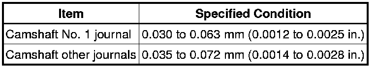 (g) If the oil clearance is greater than the maximum, replace the camshaft. If necessary, replace the cylinder head.