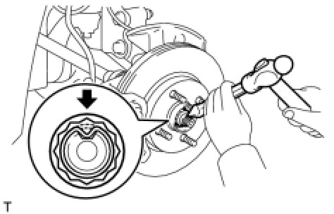 * Tighten the axle hub nut while the brakes are applied to prevent the front axle from rotating.