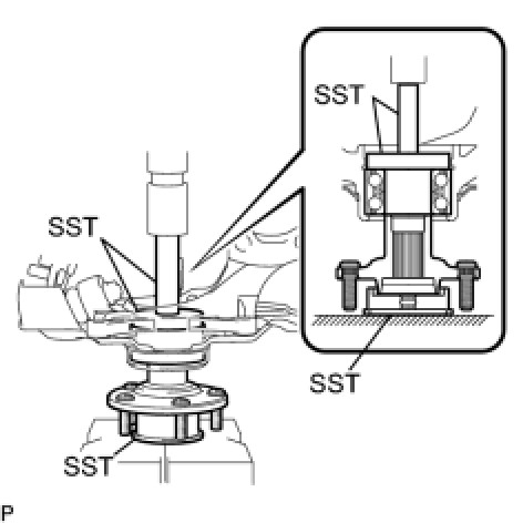 (a) Using SST and a press, install the front axle hub sub-assembly.