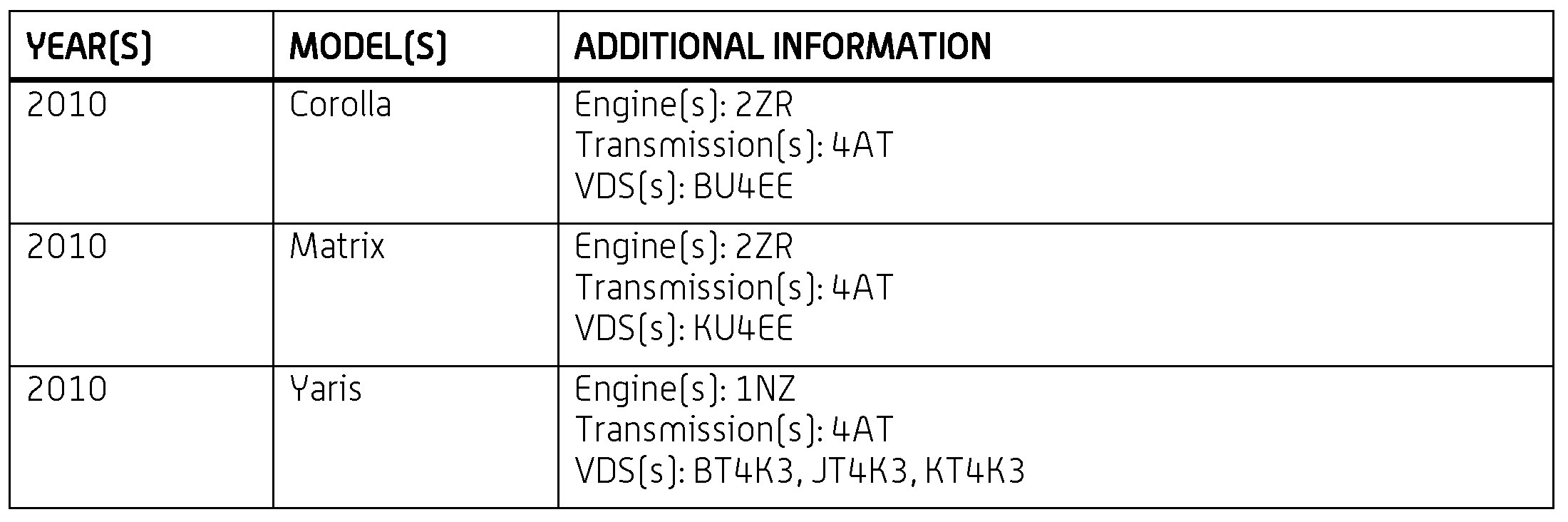 '10 Corolla, Matrix, Yaris