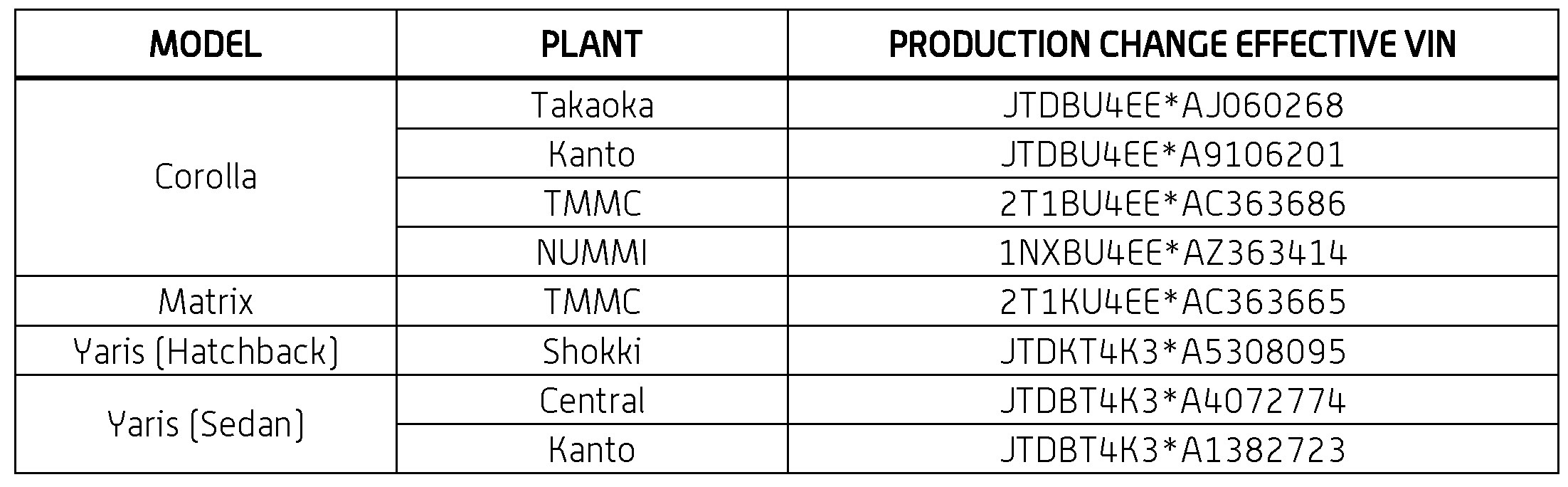 This TSB applies to vehicles produced BEFORE the Production Change Effective VIN shown.