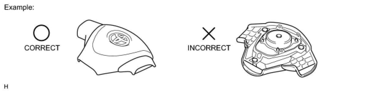 (1) Always place a removed or new steering pad surface upward as shown in the illustration. Placing the steering pad with the pad surface facing down could cause a serious accident if the airbag deploys. Also, do not place anything on top of the steering pad.