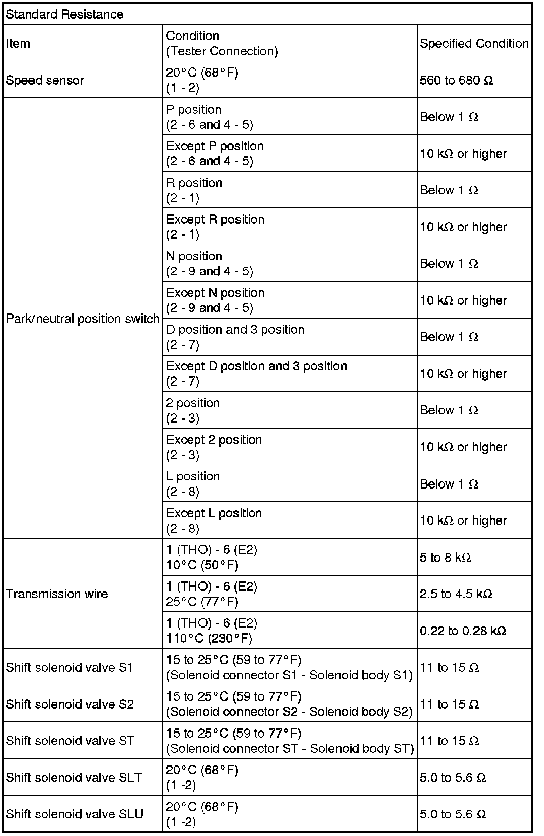 SPECIFICATIONS: U341E AUTOMATIC TRANSMISSION / TRANSAXLE: SERVICE DATA
