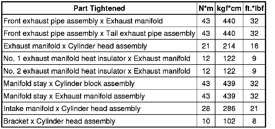 SPECIFICATIONS: 2ZR-FE INTAKE / EXHAUST: TORQUE SPECIFICATIONS