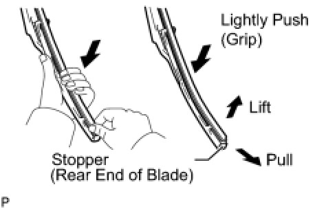 (a) Lift and pull the end of the wiper rubber protruding from the blade stopper as shown in the illustration.