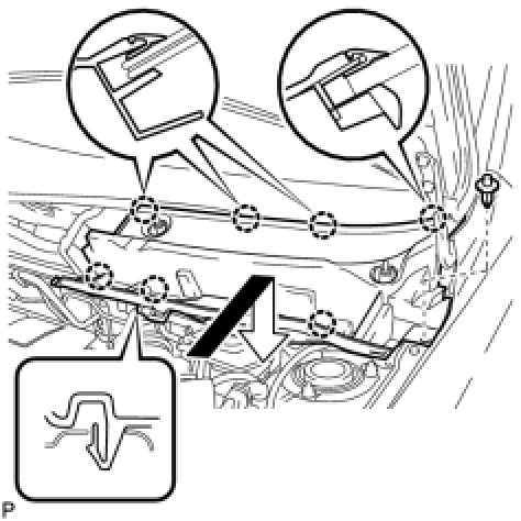 (b) Engage the 2 claws to install the hood to cowl top seal.
