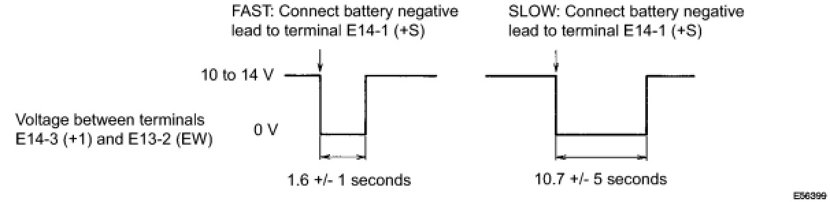 (2) Connect a battery positive (+) lead to terminal E14-2 (+B) and a negative (-) lead to terminals E14-1 (+S) and E13-2 (EW).