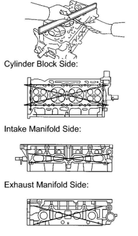 (a) Using a precision straightedge and a feeler gauge, measure the surface contacting the cylinder block and the manifolds for warpage.