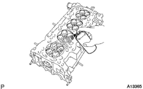 (a) Using a dye penetrant, check the intake ports, exhaust ports and cylinder surface for cracks.