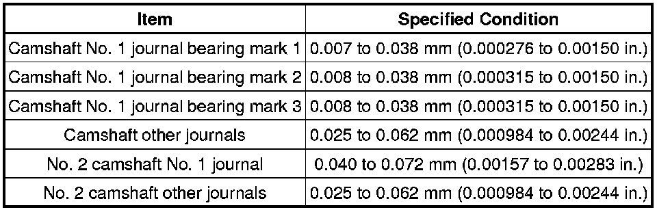 * If the oil clearance is greater than the maximum, replace the camshaft. If necessary, replace the cylinder head.