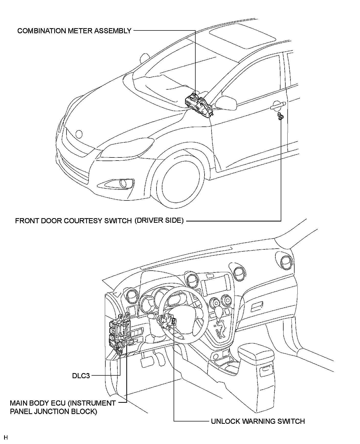 DOOR LOCK: KEY REMINDER WARNING SYSTEM: PARTS LOCATION