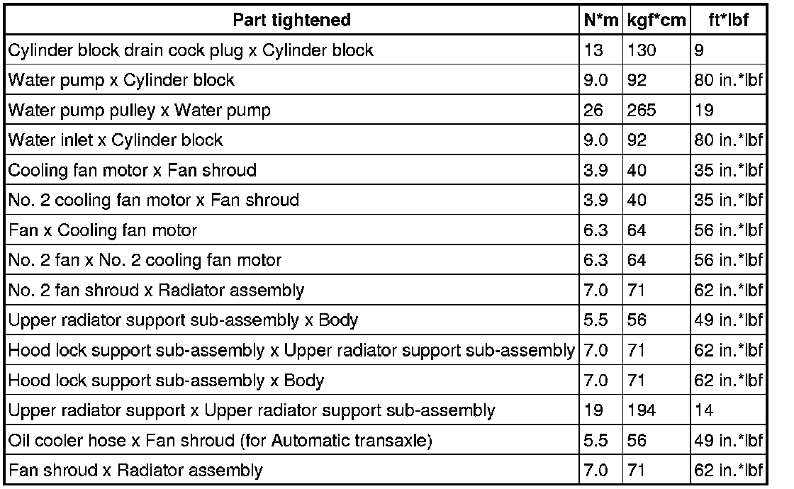 SPECIFICATIONS: 2AZ-FE COOLING: TORQUE SPECIFICATIONS