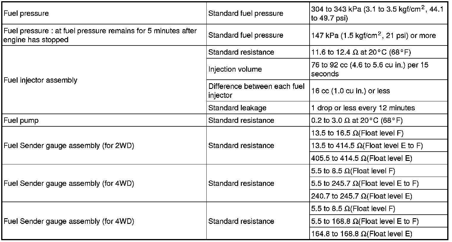 SPECIFICATIONS: 2AZ-FE FUEL: SERVICE DATA