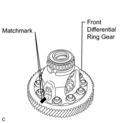 (c) Align the matchmarks, and install the front differential ring gear case quickly.