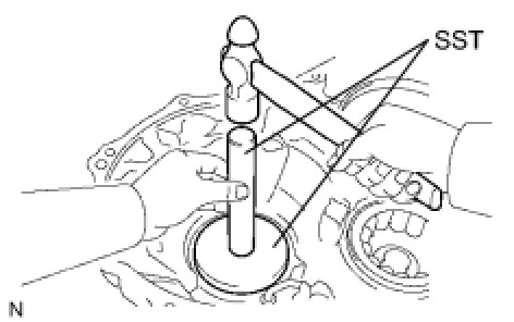 (d) Using SST, turn the differential assembly right and left 2 or 3 times to settle the bearing.