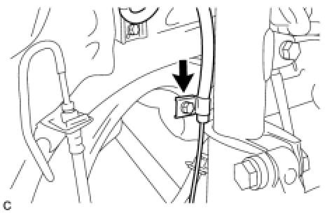 Fully tighten the nut (B) after fully tightening the rear No. 2 body mounting bracket sub-assembly in the following steps.