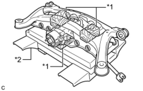 (a) Support the rear suspension member using a jack and 3 wooden blocks as shown in the illustration.