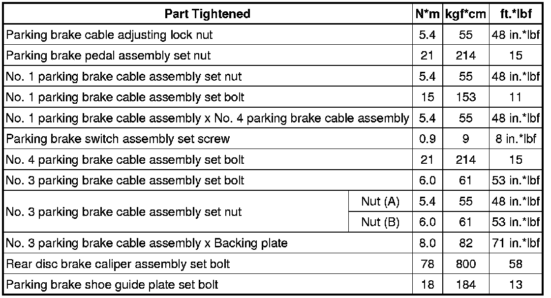 SPECIFICATIONS: PARKING BRAKE: TORQUE SPECIFICATIONS