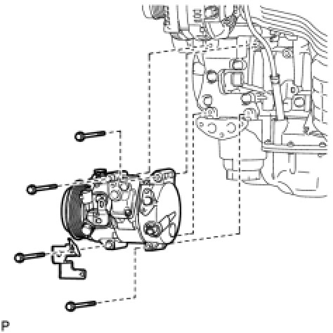 (a) Install the compressor and magnetic clutch and bracket with the 4 bolts.