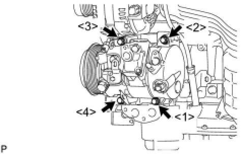 Tighten the bolts in the order shown in the illustration to install the compressor and magnetic clutch.