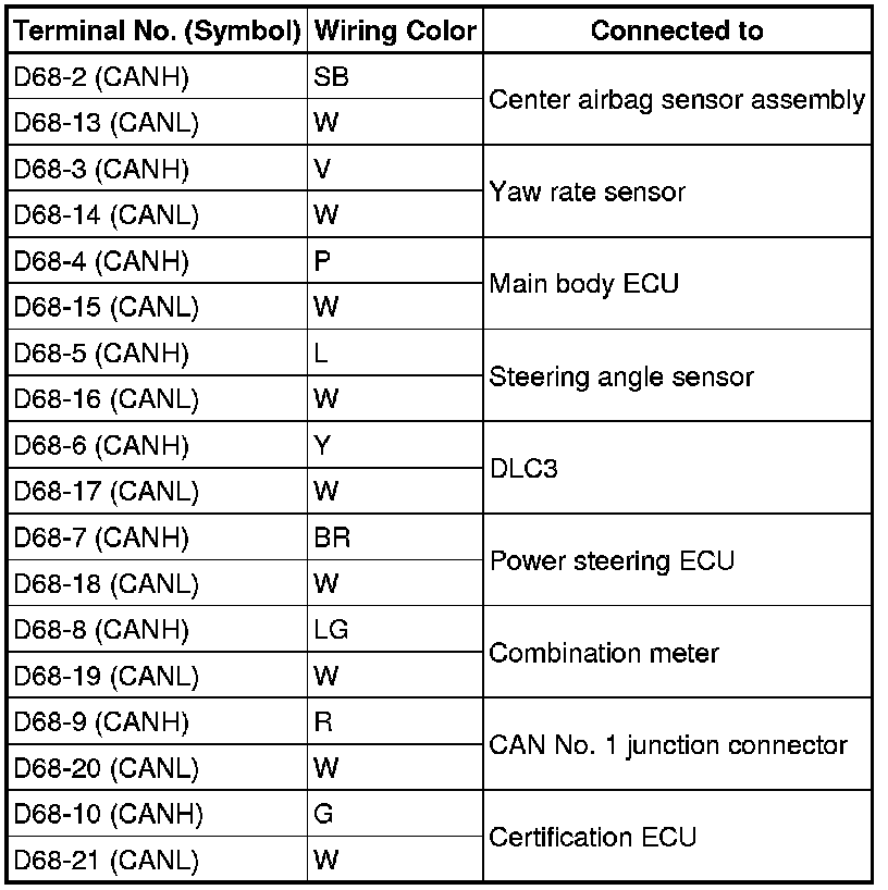 for CAN No. 1 Bus Main Wire: