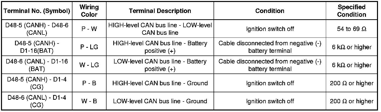 * Turn the ignition switch off before inspecting CAN bus wires for a ground short.