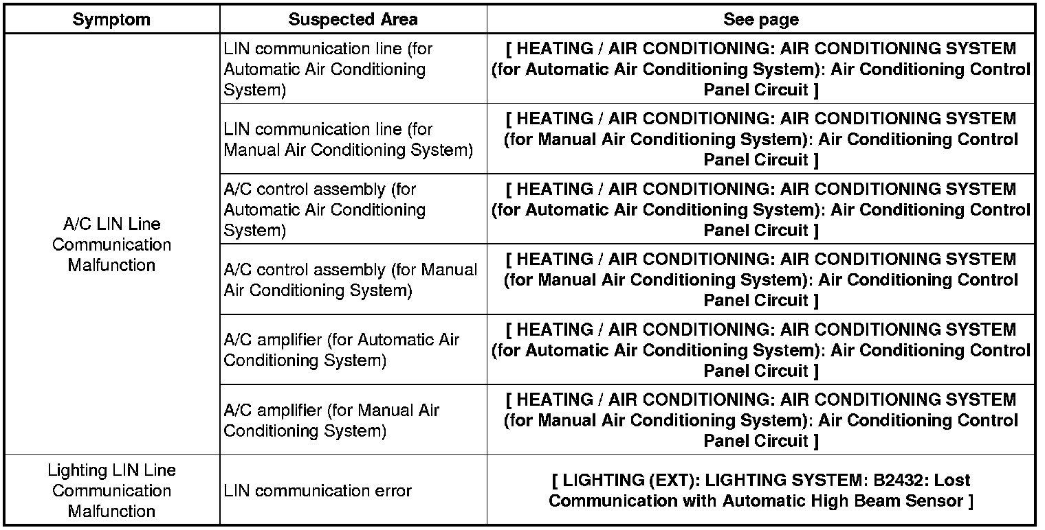 NETWORKING: LIN COMMUNICATION SYSTEM: PROBLEM SYMPTOMS TABLE