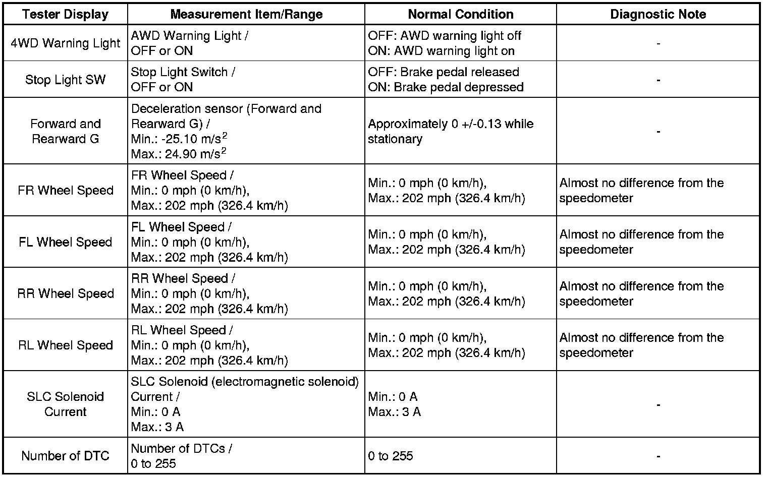 1. DATA LIST OF AWD CONTROL ECU