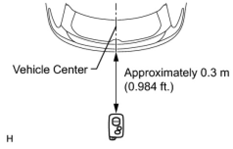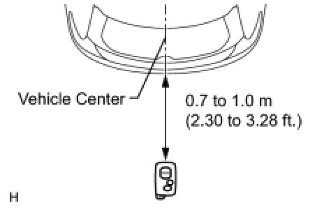 (5) When the key is held at the same height as the rear bumper upper surface and aligned with the center of the rear of the vehicle, check that the wireless door lock buzzer sounds.