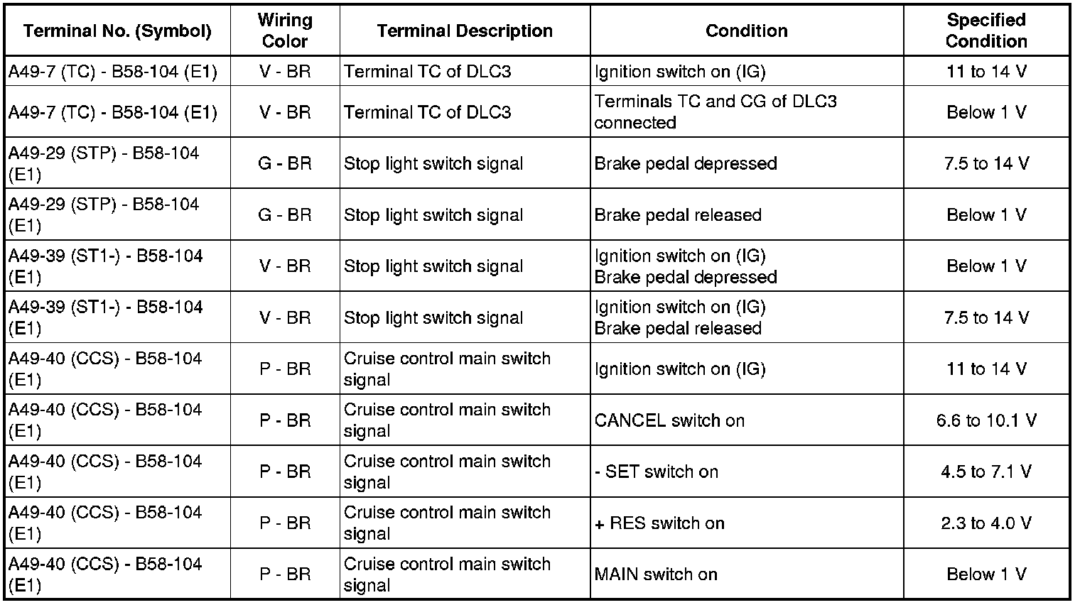 : CRUISE CONTROL SYSTEM: TERMINALS OF ECM