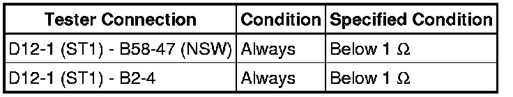 NG -- REPAIR OR REPLACE HARNESS OR CONNECTOR (ST RELAY - PARK/NEUTRAL POSITION SWITCH ASSEMBLY - ECM)