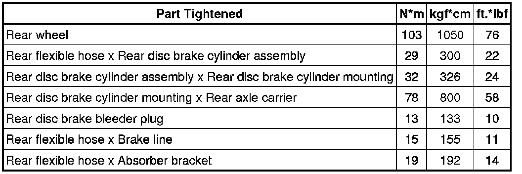 SPECIFICATIONS: BRAKE (REAR): TORQUE SPECIFICATIONS