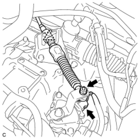 (b) Remove the nut and transmission control cable from the control shaft lever.