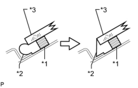 (b) Install the 2 new No. 2 windshield glass stoppers onto the windshield glass, as shown in the illustration.