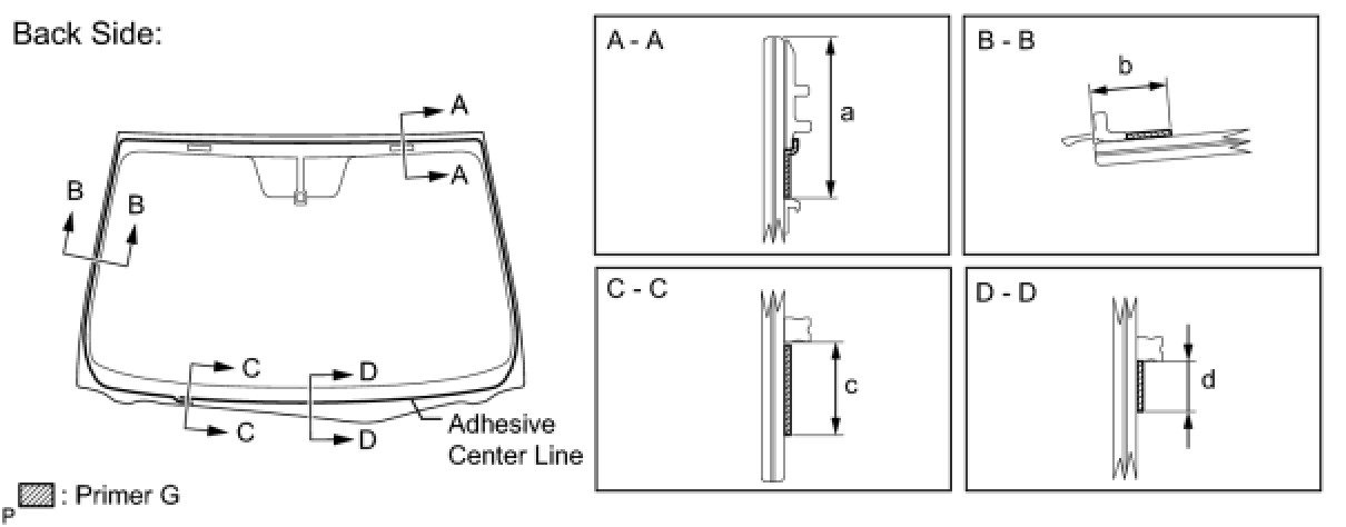 (a) Using a brush or a sponge, coat the application area of the windshield glass adhesive dam with Primer G.