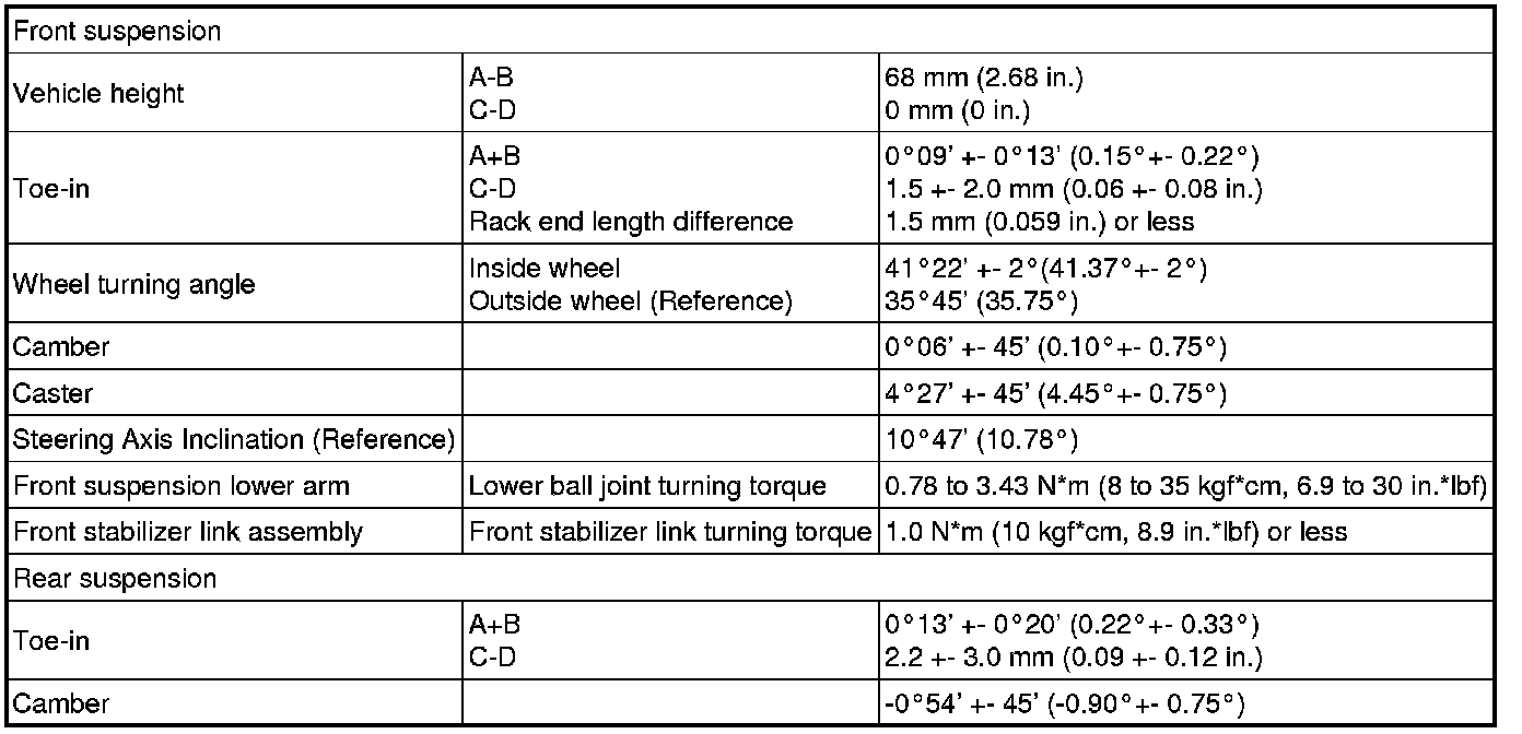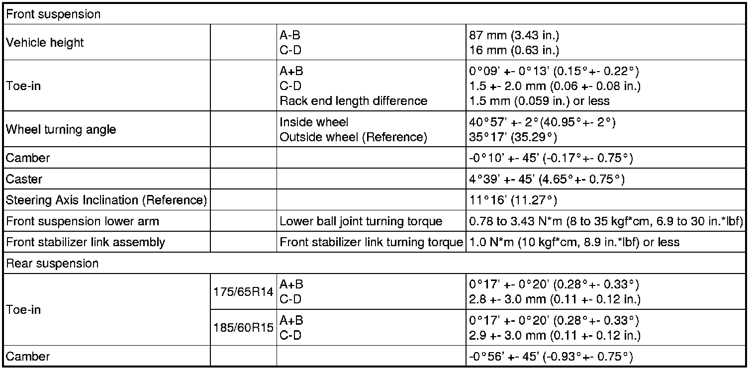 SERVICE SPECIFICATIONS: SUSPENSION: SERVICE DATA