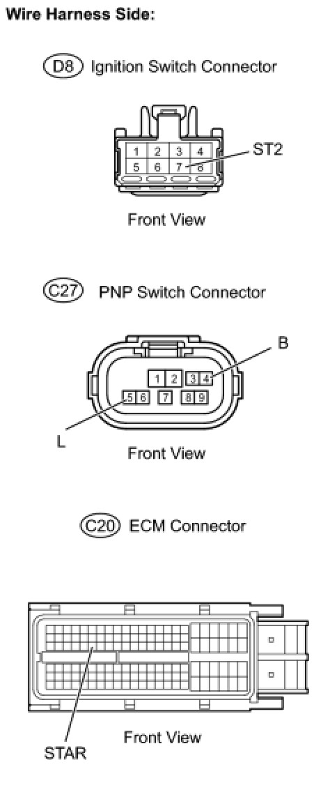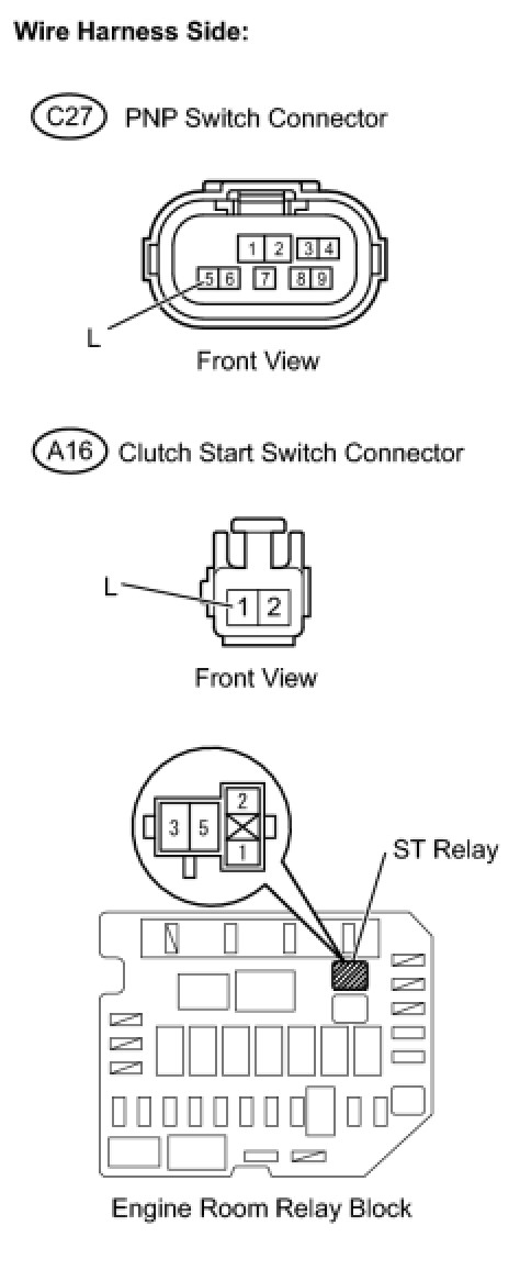 14. CHECK HARNESS AND CONNECTOR (PNP SWITCH OR CLUTCH START SWITCH - ST RELAY)