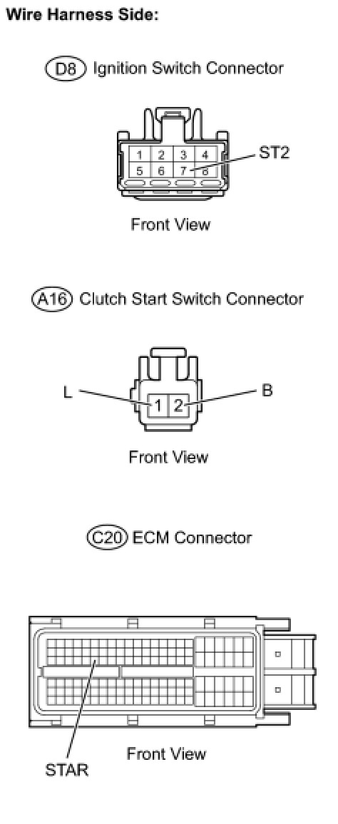 NG -- CHECK HARNESS AND CONNECTOR (IGNITION SWITCH - CLUTCH START SWITCH - ECM)