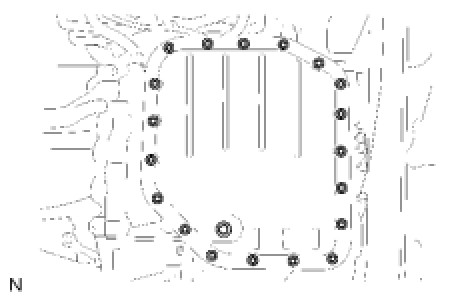 Install the oil pan and a new gasket with the 19 bolts.